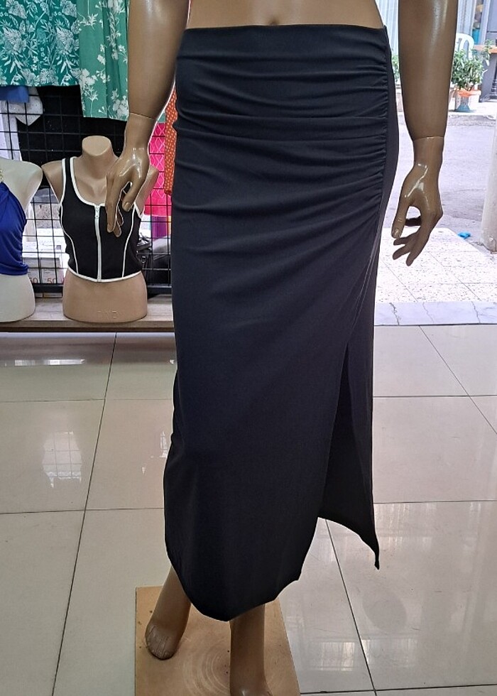 Büzgü ve yırtmaç detaylı etek