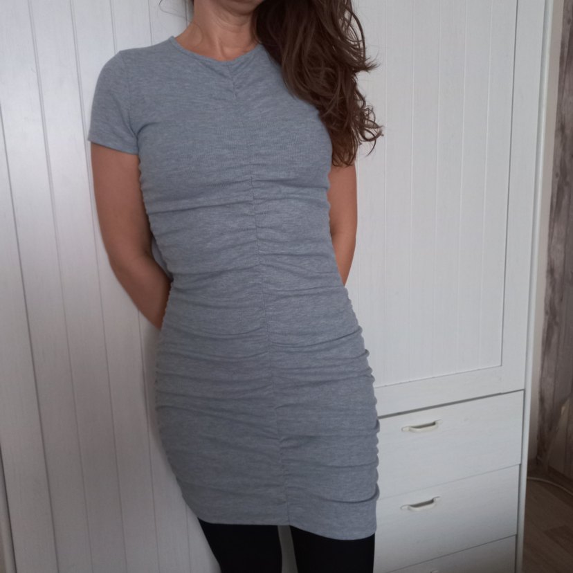 Fitilli pamuk esnek kumaştan yapılmış dar mini elbise, çok az kullanılmış, yeni gibi