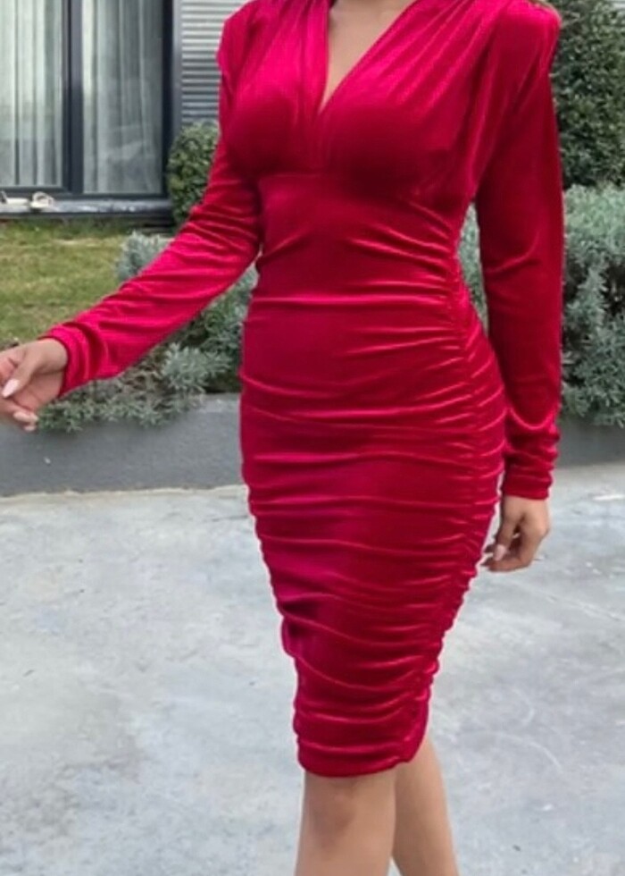 Büzgülü kadife elbise