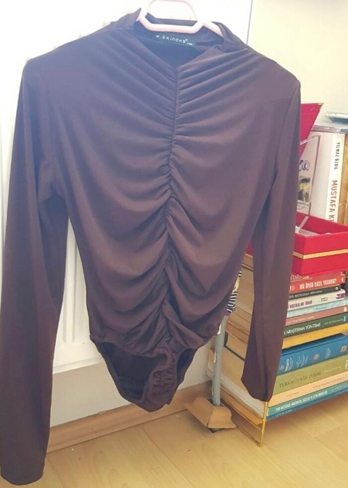 Büzgülü kahverengi bluz