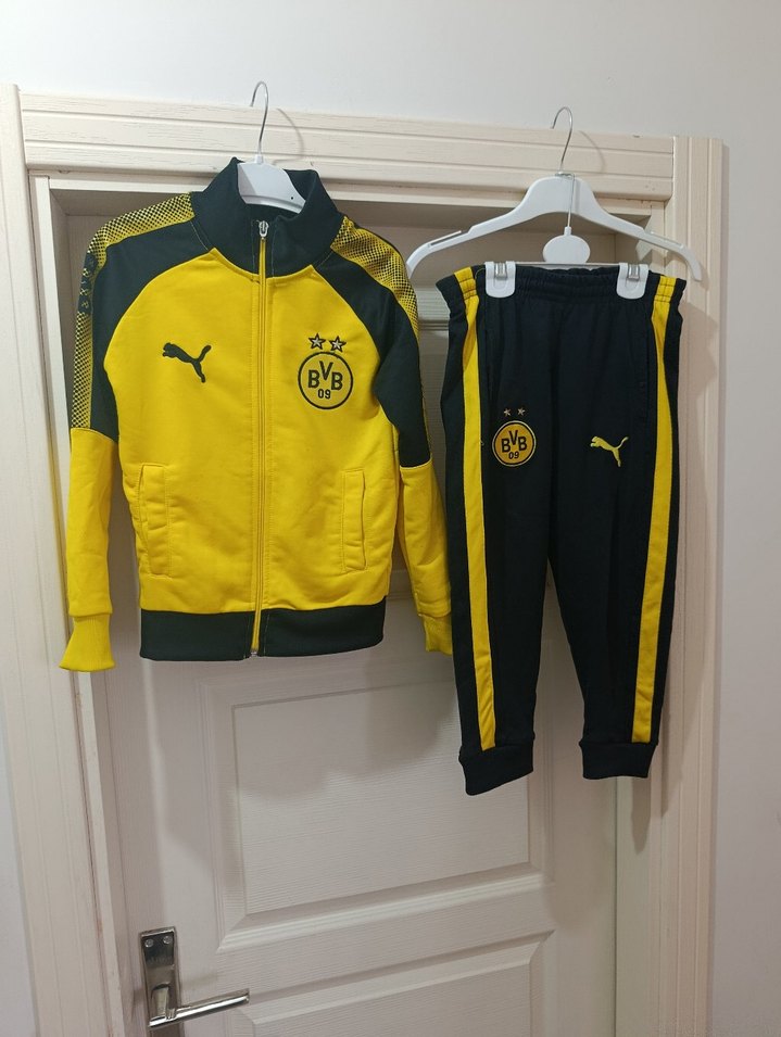 BVB baskılı, sarı-siyah renkli, fitted kesim erkek cocuk eşofman takımı. ürün temiz kullanılmıştır yırtık sökük yoktur fermuarı sağlamdır alt ve üstte ikisinde de cep mevcuttur kollarda hafif bir renk değişimi vardır belki yıkamakla geçer satacağım için uğraşmak istemedim ama asla göze batmamaktadır aynı takımın farklı renkleri mevcuttur siyah kırmızı mavi teklifler değerlendirilir göz atmayı unutmayın