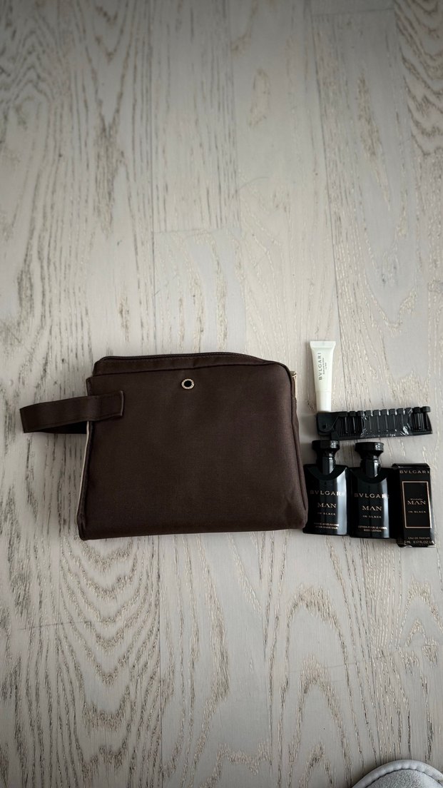 #bvlgari #bvlgarierkekcanta #bvlgarierkekset #maninblack #bvlgariset Orijinal Bvlgari çanta. Emirates için üretilmiştir. Kalın kumaştır, yanı kalın deri logolu gibi, fotoğrafta görülebilir. İçinde Bvlgari 5 ml Man In Black parfüm, 15 ml Man In Black After Shave Balm, 15 ml Man In Black Body Lotion, 7 ml Bvlgari dudak koruyucu ve tarak.