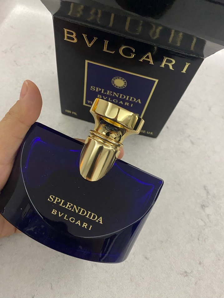 Bvlgari Splendida kadın parfümü, 100 ml şişede derin mavi tasarıma ve altın kapaklıdır. Lüks bir koku deneyimi sunar. Parmağımı koyduğum 11. Fotoğrafa kadar dolu ful diyebiliriz orijinal barkod sorgulamasını ekranda görüyorsunuz hediye gelmişti ağır bir koku olduğu için kullanamadım sıfır denebilir kutuludur indirim yaparım ciddi alanlar yazsın