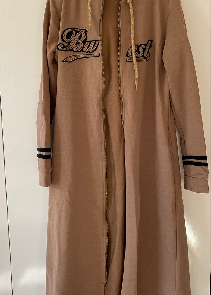36 beden Vizon renk Bir kez kullanıldı Fermuarlı Uzun bir sweat İki iplik kumaştan Kapşonludur
