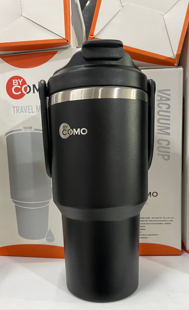 By Como marka siyah termos matara, içecekleri sıcak veya soğuk tutar. Kapaklı ve kulplu tasarımıyla taşıması kolaydır. Seyahat için uygundur. 900 ml çelik