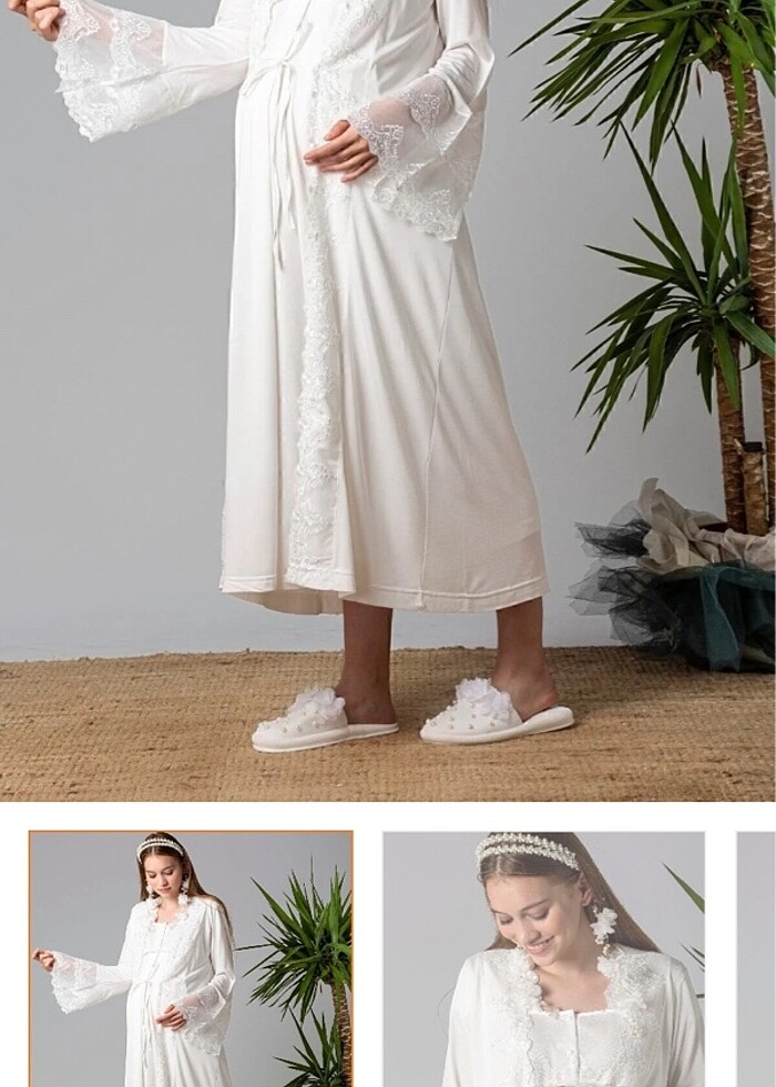 ByLohusa Effortt ekru sabahlıklı hamile lohusa gecelik takım