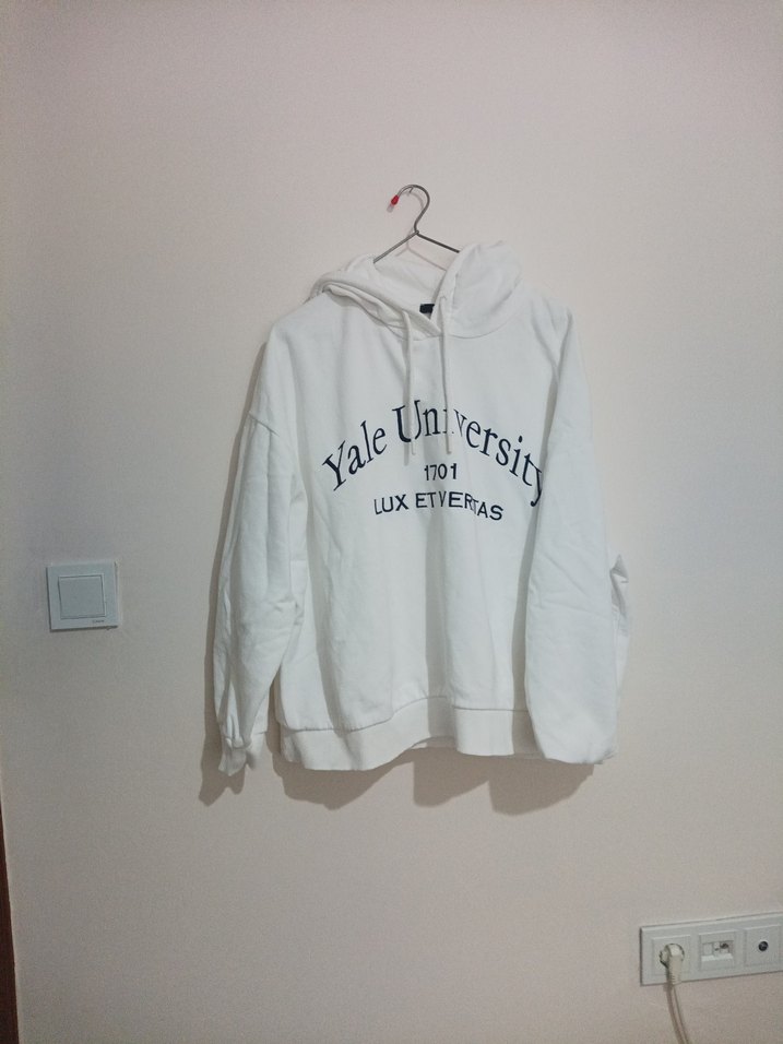 Yale University baskılı, uzun kollu, oversize beyaz sweatshirt. Yumuşak ve rahat kumaştan günlük kullanım için uygundur. az kullanılmış geniş kalıp