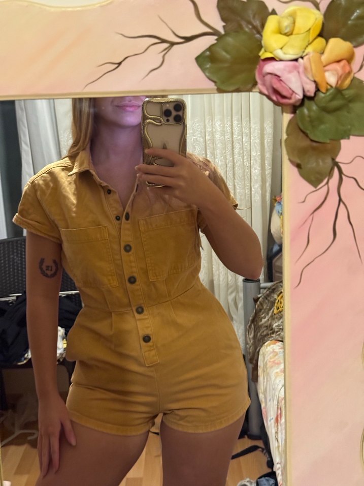 C&A hardal Düğmeli Kısa Denim Tulum