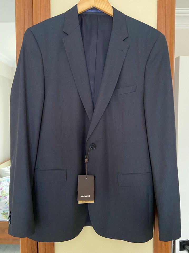 Bedeni olmadığı için satıyorum. Sadece ceket. Sıfır, etiketli, mağazadan nasıl alacaksanız o şekilde. 50/6 drop, 130s Italian fabric %100 yün. Düz desen, lacivert renk, mix&match travel serisi.