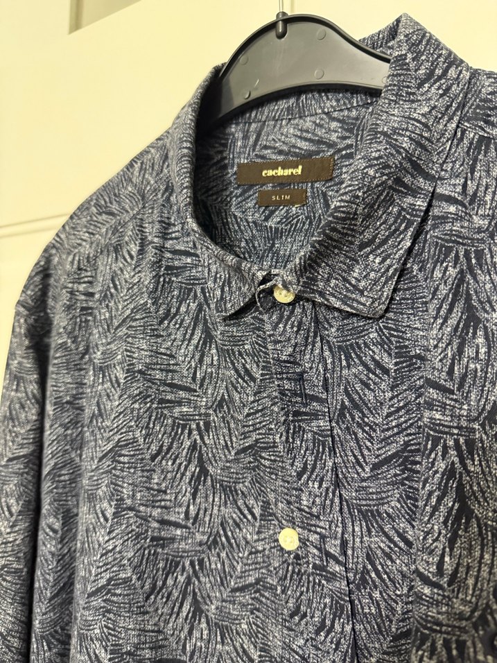 Cacharel Erkek Lacivert Desenli Keten Gömlek
