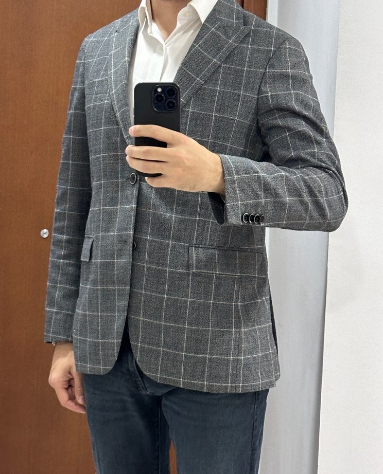Cacharel Gri Ekose Desenli Erkek Ceket