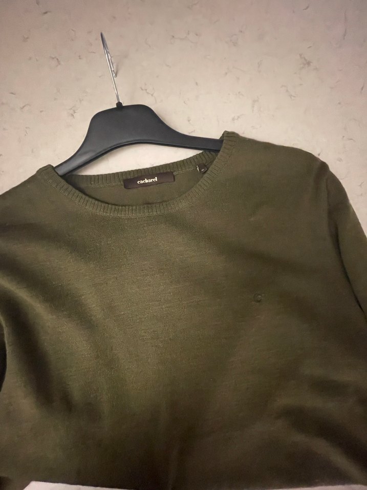 Cacharel Marka Yeşil Yünlü Erkek Bisiklet Yaka ince Triko