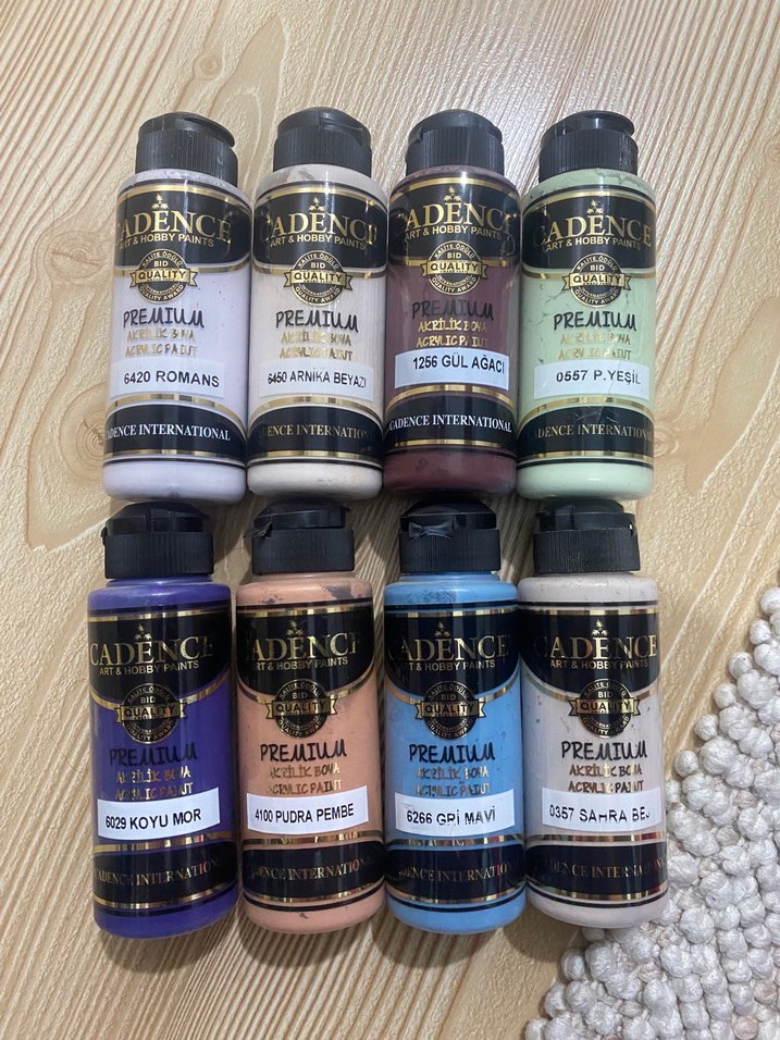 Cadence Premium akrilik boya seti, farklı koyu ve canlı renklerde .Her bir boya şişesinde renk isimleri ve kodları yer almaktadır. Tanesi 90 tl istediğiniz renkler için yazınız. Hiç açılmamış