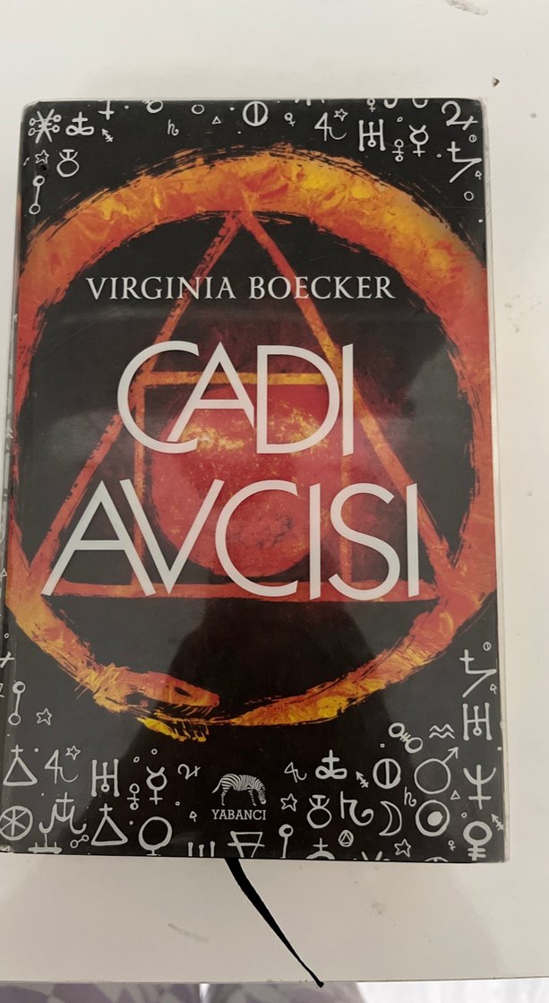 Virginia Boecker'ın "Cadı Avcısı" adlı romanı, fantastik ve macera ögeleriyle dolu, kapağında gizemli semboller bulunuyor.