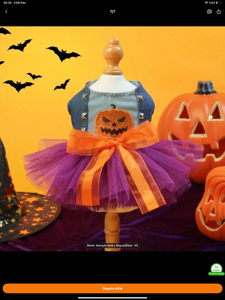 Cadılar bayramı / Hallowen köpek kıyafeti Xs beden