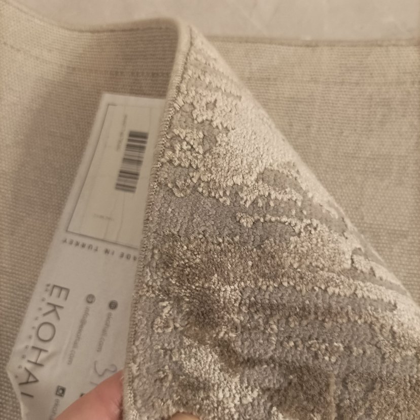 Çağdaş stil bej ve gri tonlarında, desen içermeyen yumuşak dokulu halı. Eko hali sıfır 80*150