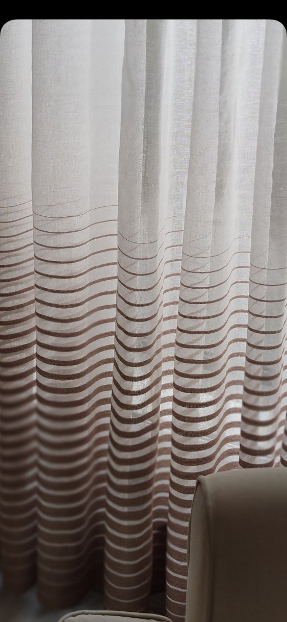 en 2.50 boy 2.50 sık pile Bu çağdaş perde, gri çizgili desenlere sahip keten kumaşıyla her odaya modern ve sade bir görünüm sunar. ️