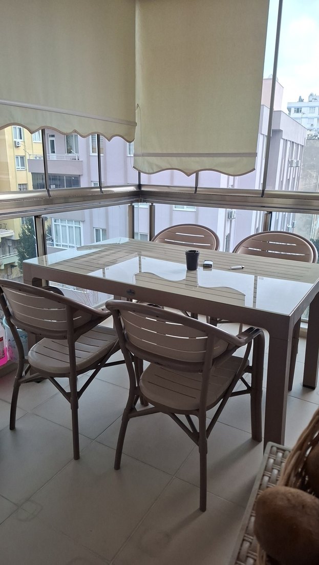 Çağdaş tarzda, bej ve gri renkte, desensiz masa ve sandalye takımı. Modern yemek alanları için uygun bir set. ️Tek satma amacımız daha küçüğünü almak camıyla beraber 4 sandalyelı.Baniodan alındı sapasağlam