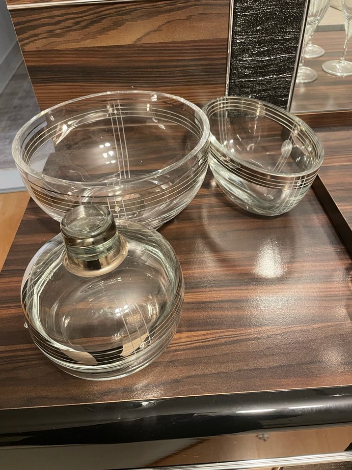 Çağdaş tarzda, şeffaf camdan yapılmış, ince çizgili farklı boyutlarda kaselerden oluşan set. Servis veya dekorasyon için uygundur. ️
