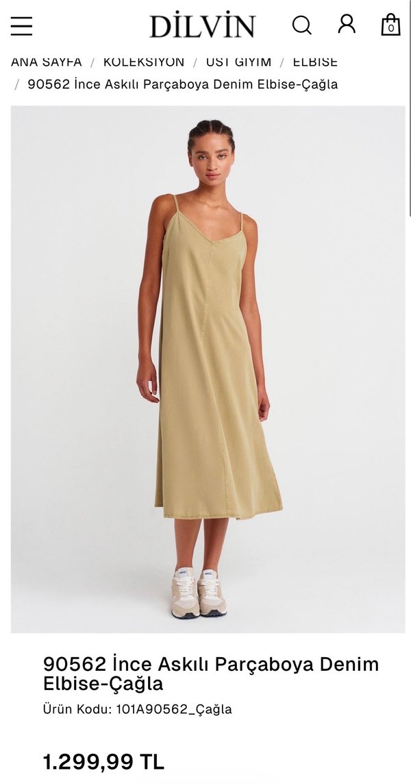 Çağla yeşili renk, ince askılı, V yakalı, uzun ve bol kesim elbise. Sade ve ipeksi dokusu günlük rahat şıklık sunar.