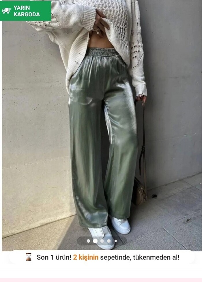 Çağla yeşili parlak pantolon