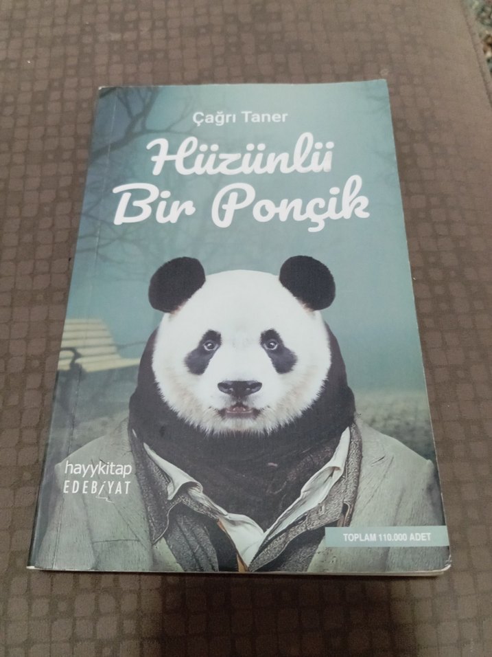 Çağrı Taner'in yazdığı, hayykitap tarafından yayımlanan "Hüzünlü Bir Ponçik" adlı mizah kitabı. Kapakta takım elbise giymiş bir panda yer alıyor.