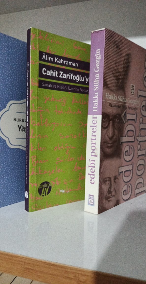 Alim Kahraman'ın Cahit Zarifoğlu üzerine notları ve Hakkı Süha Gezgin'in edebiyat portreleri kitapları.