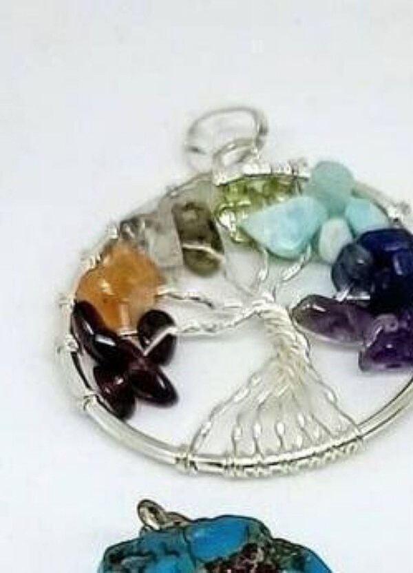 Doğal taş çakra taşları ile dizili hayat ağacı kolye