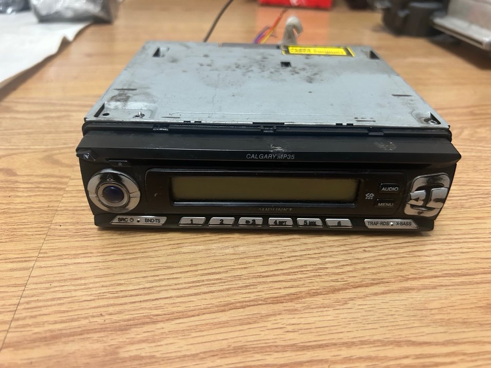 Calgary MP35 müzik sistemi, siyah ve gri tasarıma sahip olup dijital ekran ve kolay kullanım için çoklu kontrol düğmeleri içerir.