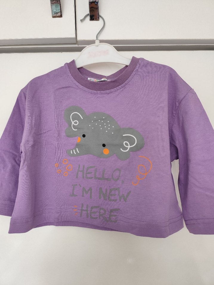 Pamuklu ince uzun kollu bisiklet yaka 12-24ay kız bebek lila renk