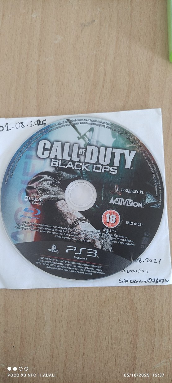 Call of Duty Black Ops PS3 için aksiyon dolu oyun diski. Activision ve Treyarch tarafından hazırlanmış, 18+ yaş için uygun. Call of Duty BLACK OPS PlayStation 3 için gelişmiş grafikler ve oynanış sunan yoğun bir birinci şahıs nişancı oyunudur. CALL OF DUTY PS3 BLACK OPS TEMİZ İKİNCİ EL-fotoğrafta ne görüyorsunuz o gelecek size. ACTIVISION finity ward ©2007 Activision Publishing, Inc PLAYSTATİON 3 Srono! Started 0730 violation of appl platesfactured ABS-012120 onk ON PLAYSTAT BLUS-30072 DO DOLBY DIGITAL MATURE 17+ Blu- Blueray Disc