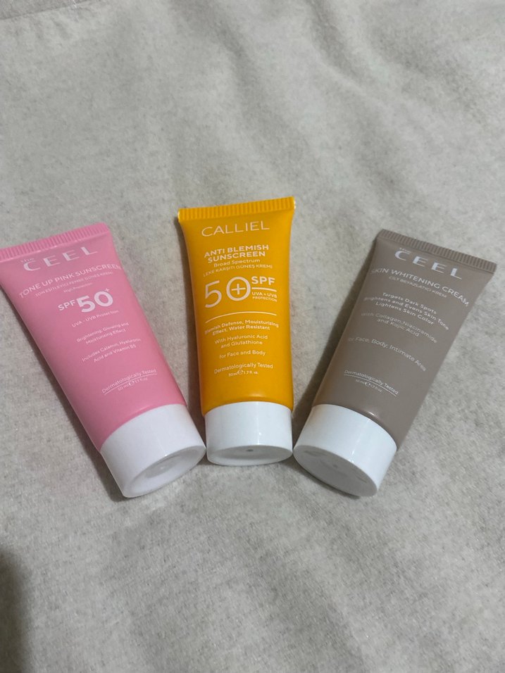 CALLIEL Anti-Blemish Güneş Kremi, SPF 50 koruma sağlar. Hafif ve yağsız formülü ile yüz ve vücut için uygundur. Üçlü fiyattır