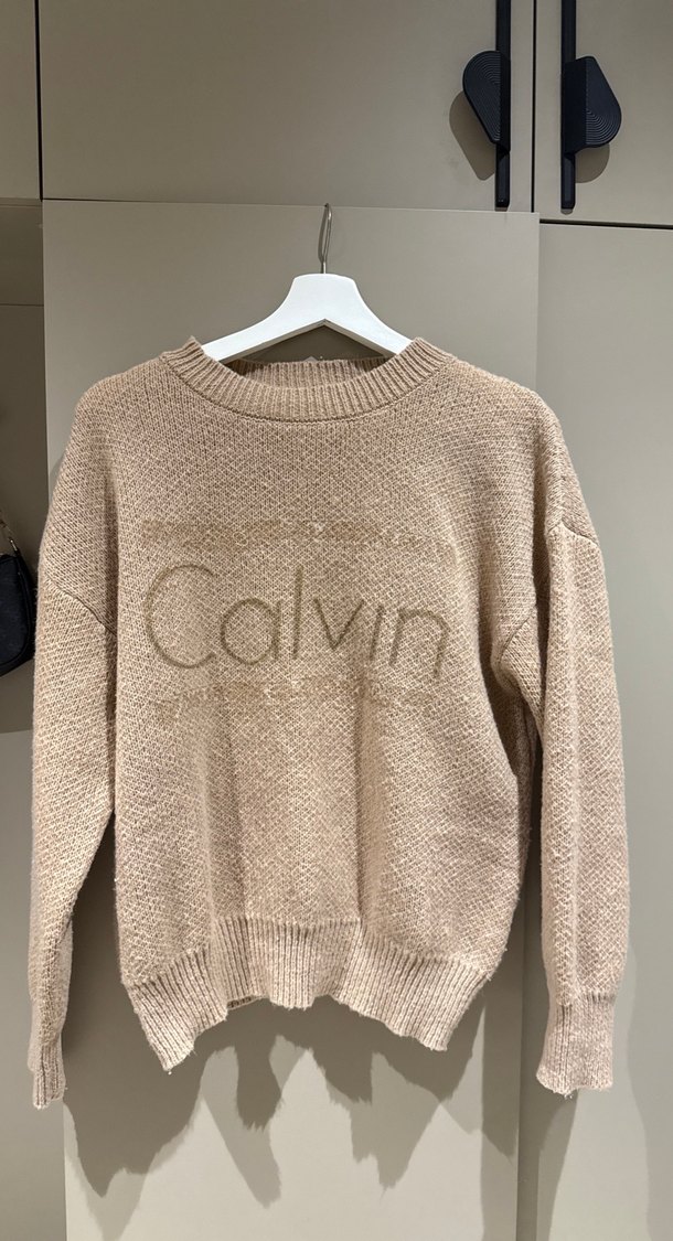 Bej renkli, uzun kollu ve yuvarlak yakalı triko kazak. Rahat kesimi ve 'Calvin' yazısı ile günlük sokak stiline uygundur.