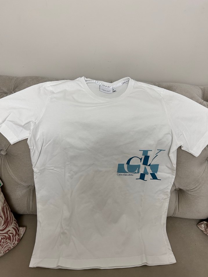 Pamuklu, kısa kollu, beyaz baskılı erkek tişörtü. En 47 boy 68 cm
