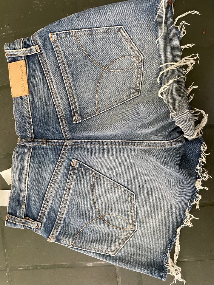 Baskılı detaylı, cırt cırtlı, normal boy mavi denim jean. Günlük sokak modasına uygun, Calvin Klein markası.