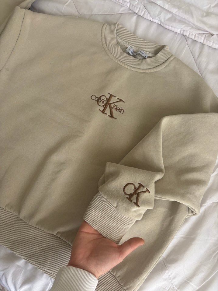 Calvin klein Bej Kadın Sweatshirt Uzun Kollu Rahat Kesim