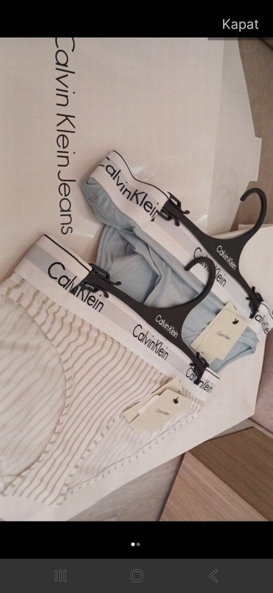 Calvin Klein marka, beyaz kısa mini atlet ve uyumlu külot, markalı elastik bantlarla sade ve çağdaş athleisure tarzda.