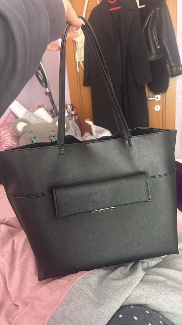 Siyah deri, tokalı detaylara sahip, günlük iş ve sokak tarzına uygun kadın omuz çantası. Acil ihtiyacım olduğu için satıyorum çok güzel geniş bir çantadır kalıplıdır ağırlık olunca altından sarkma yapmaz derisi kalitelidir hiçbir yerinde Çizik yırtık sökük hiçbir şey yoktur. Boynerden alınmıştır