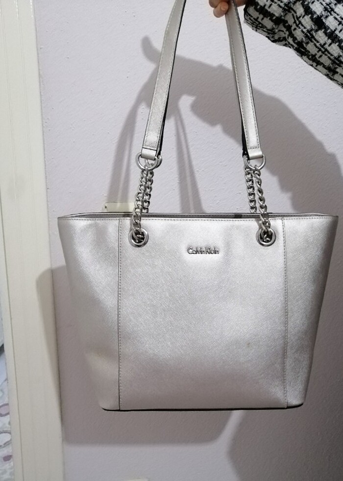 Bir sefer kullanılmış orjinal calvin klein çanta gümüş rengi