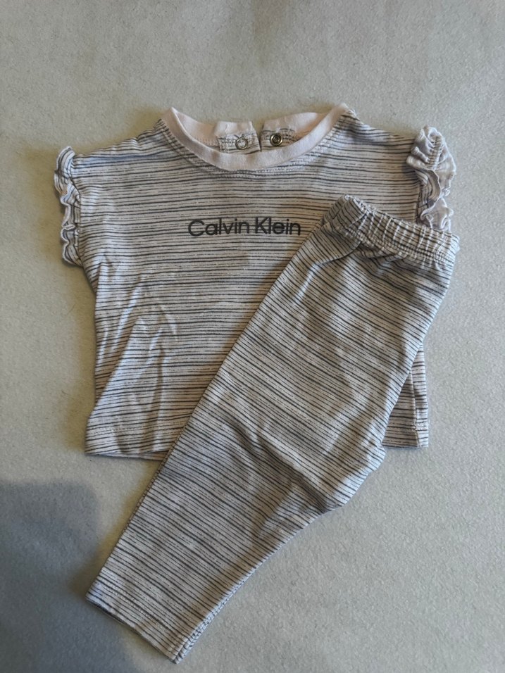 Calvin Klein marka, çizgili kız bebek takımıdır. Orijinaldir Amerikadan alındı, çok az kullanıldı.