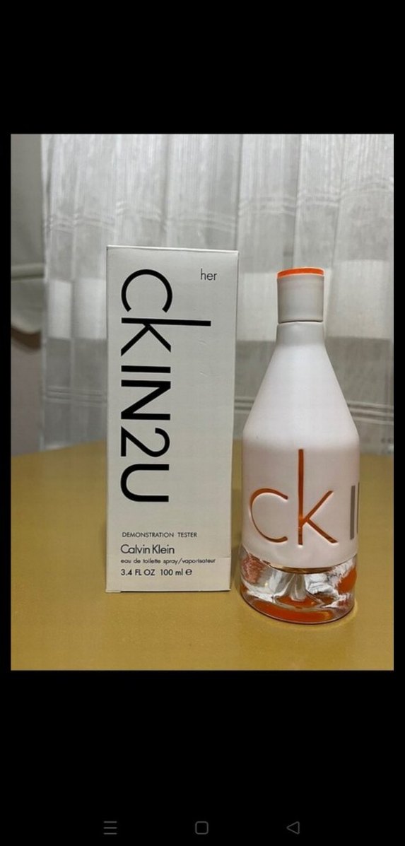 Calvin Klein CKIN2U Her, beyaz ve turuncu detaylı şişede 100 ml hafif ve ferah kokulu minimalist tarzda kadın parfümüdür.
