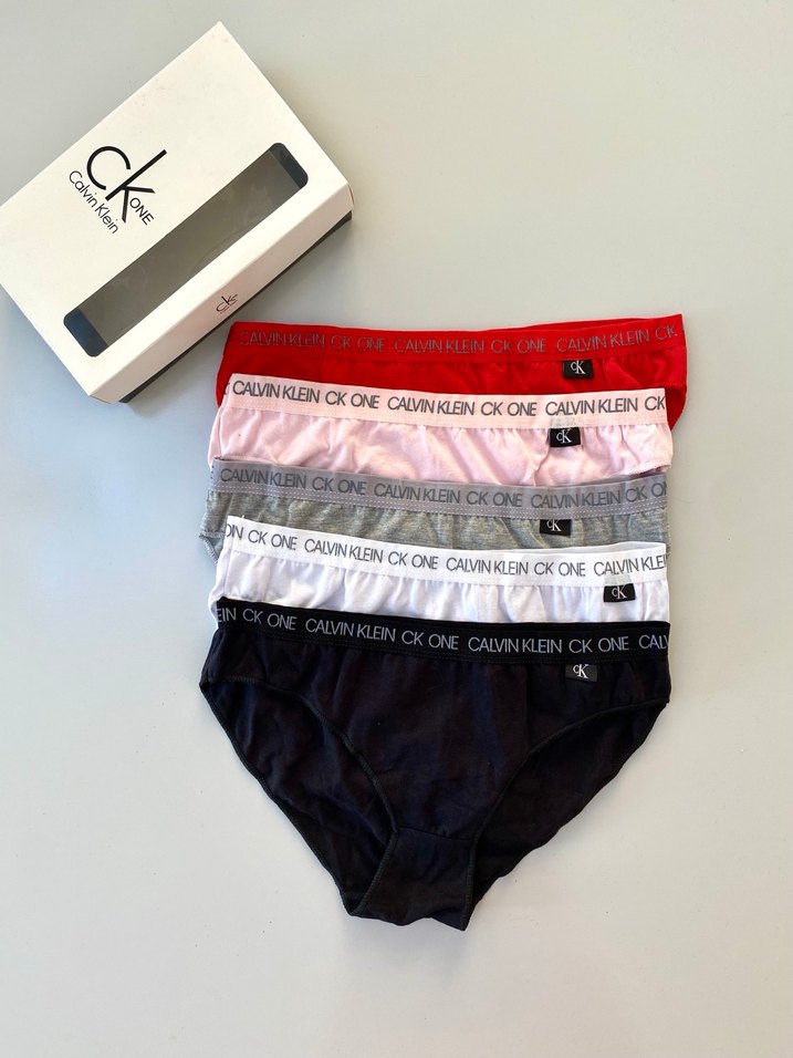 Calvin Klein markalı, çok renkli, mini uzunlukta kadın külot seti, rahat bir kullanım sağlar.