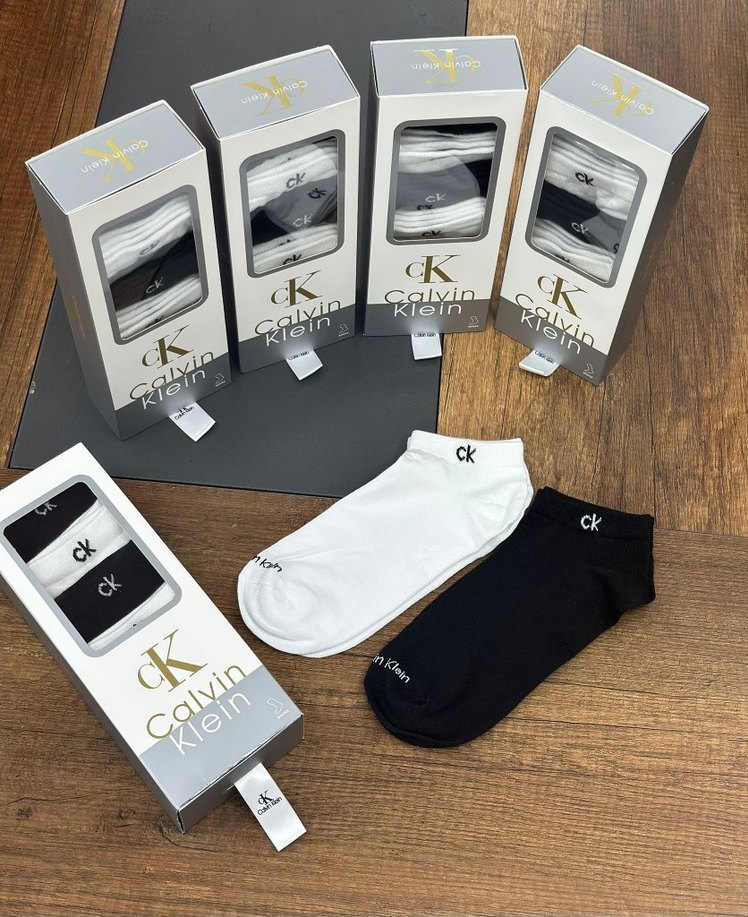 Calvin Klein kısa boy erkek çorapları, üzerinde 'ck' baskılı desenlerle. Beyaz ve siyah renk seçenekleri, rahat kesimlidir. 6 adettir