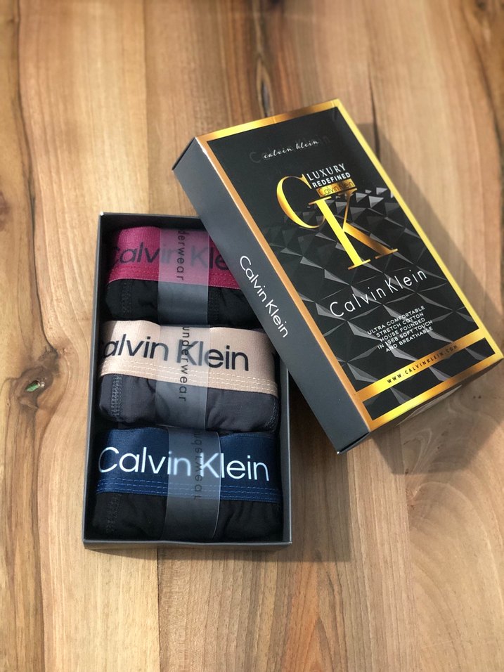 Calvin Klein markalı, baskılı desenli, koyu renklerde ve kısa boyda, vücuda oturan erkek boxer seti. Rahat ve şık kullanım sunar.