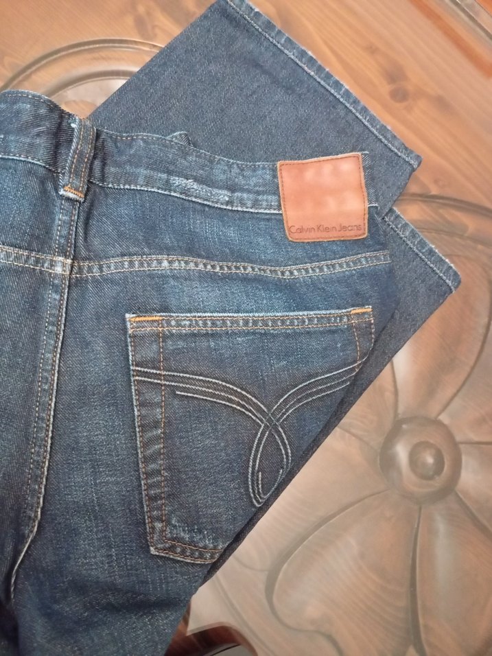 Calvin Klein erkek kot pantolon, düğmeli ve normal kesimdir. Parlak kahverengi deri detaylı, desen içermeyen günlük rahat stil için uygundur.