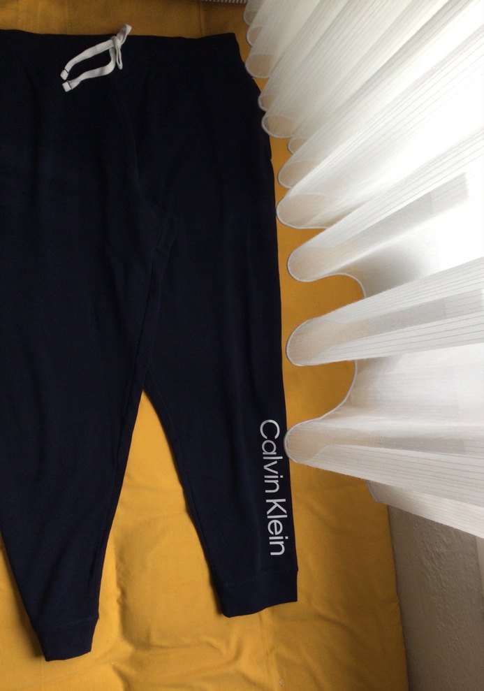 Calvin Klein markalı, lacivert renk, elastik bel bantlı, sentetik kumaştan üretilmiş, normal midi boyda, fitted kesim erkek eşofman altı. Spor ve günlük kullanım için uygundur. ♂️