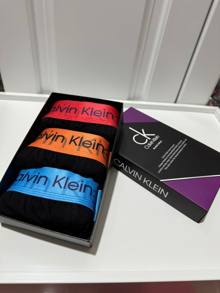 Calvin Klein logolu bel bantlı, koyu renkli, baskılı, atletik kesim 3'lü erkek mini boxer seti.