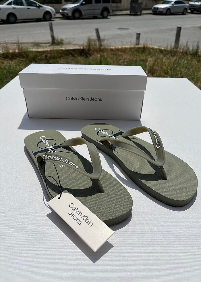 Ürün ck mağazasından alınmıştır.Etiketli ve 42 numaradır.Terliğin sapında, zemininde logo detayları yer almaktadır.Zemininde küçük detaylar yer almaktadır detaylı fotoğrafını ekledim.Yazın her günü günlük olarak her yere kullanılabilecek bir üründür.