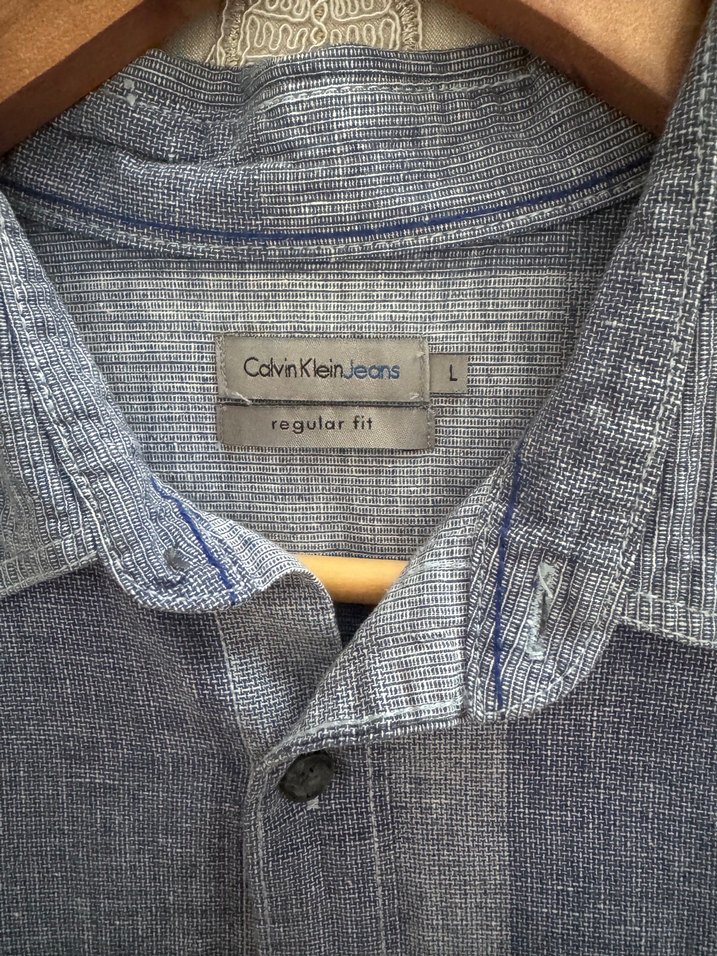 Calvin Klein markalı, düğmeli, gri denim gömlek. Uzun kollu, yakalı ve regular fit kesime sahiptir. Günlük rahat kullanıma uygundur.