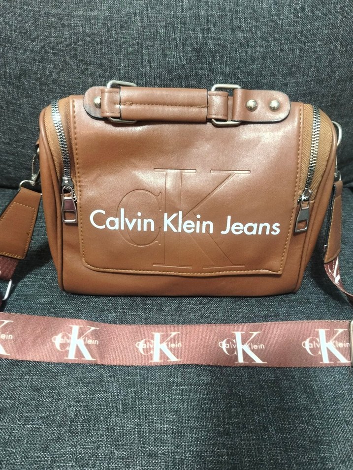 Calvin Klein Jeans'in kahverengi deri çapraz çantası, parlak yüzey, tokalı detaylar ve CK logosu baskılı kayış ile dikkat çekiyor. Günlük ve sokak stiline uygun.